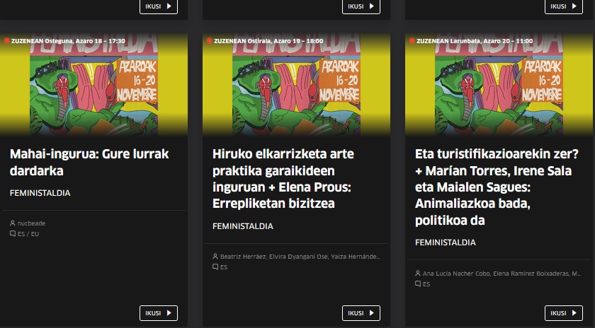 Si no podéis venir presencialmente a Tabakalera, aquí tenéis todo el contenido de Feministaldia XVI en vídeo, día a día.