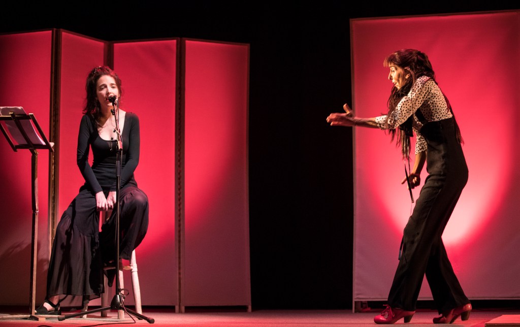 Miren Amuriza bertsolariaren eta Askoa Etxebarrieta flamenko dantzariaren arteko elkarrizketa artistikoa du oinarri GORRIA emanaldiak. Muin berbera dute adierazpide biek, bat-batekotasuna, eta bertan egin dute topo sortzaileek. Ikuskizunean zehar, nor bere hizkuntzan kantatzen edo dantzatzen hasi eta kode konpartitu eraikitzen joango dira bi-bientzako funtsezkoa den moldea oinarri hartuta: kopla. Kolore gorriaren sinbologia hari moduan baliatu (bizitza eta heriotza, arriskuak eta debekuak, karga ideologikoa, lotsa, desira…) eta banako zein kolektibo moduan zeharkatzen gaituzten gatazkez arituko dira ordu eta laurden inguruko emanaldian, gitarra eta perkusio soinuekin lagunduta eta eszenaratze soil bezain zainduarekin.